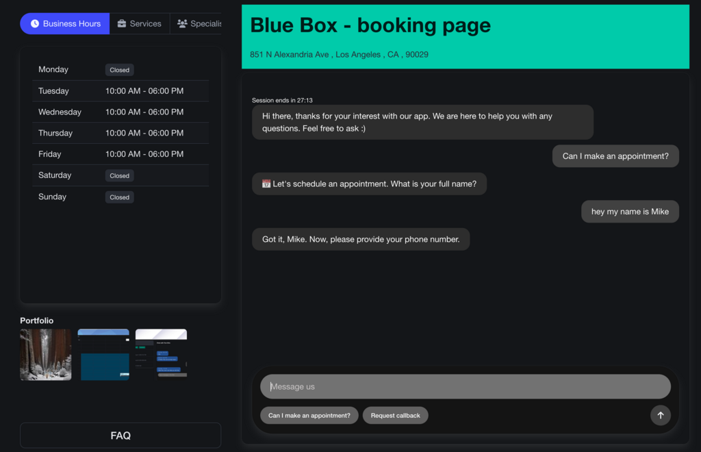 Now, when customers chat with your AI Agent, they can ask about services, pricing, or even click a button to make an appointment.